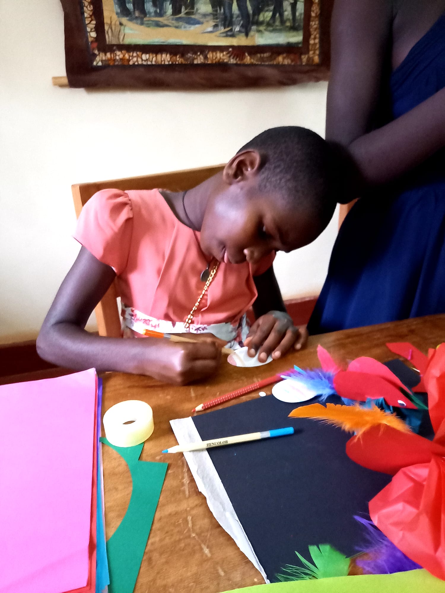 An allen vier Ostertagen haben wir einzelne Gruppen wie z.B. die Jungen der Yamba-Wohngruppe, die älteren Mädchen und die kleineren Kinder in unser Vereinshaus eingeladen und bewirtet. Mit viel Herzblut wurden die Kinder zusammen mit den Vereinsmitgliedern Ina, Susanne und Vanessa betreut. Natürlich gab es österliche Bastelarbeiten und alle waren mit Feuereifer bei der Sache. Da „Artwork“ in Ugandas Kindergärten und Schulen nicht angeboten wird, genießen die Kinder die schönen Materialien und die seltene Gelegenheit, ihren Gedanken und ihrer Kreativität freien Lauf zu lassen. Aber auch die Spiele, Gespräche und Vorleserunden waren eine willkommene Abwechselung und ein großer Spaß für alle Kinder, Jugendlichen und Erwachsenen.